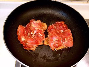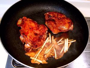 锅里抹少许油先中火煎鸡皮那面三分钟再煎另一面三分钟