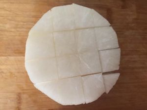 以白萝卜为例切成长条如图(根据萝卜的粗细决定切几次,我的萝卜比较大一般的切成九宫格就好)