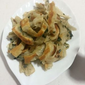 做好的饺子皮版椒盐葱油饼!香香脆脆的很好吃哦!