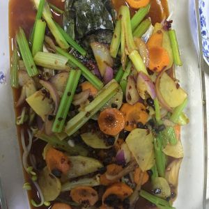 炒好后一起倒入鱼里面,再入烤箱,200度20十分钟,出锅喽!!!
