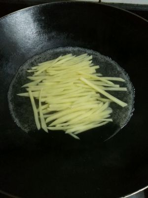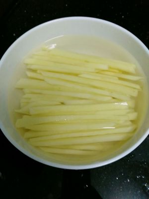 土豆切丝,放入冷水中泡15分钟去淀粉