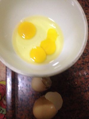 将鸡蛋打入一个干净的炖盅,我用的是初生蛋,两个就有三个蛋黄,