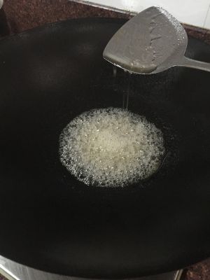 剩少许油,热锅,加一碗水,5勺白糖,大火后转小火
