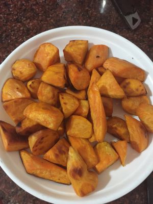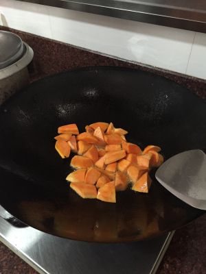 番薯切块,热油,下锅