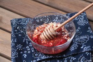 将5块腐乳捣成浆再加入3匙南乳汁,大蒜剁成蒜蓉,加入小半碗水搅拌均匀。