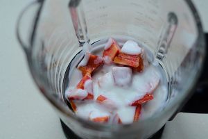 桃子、淡奶油、酸奶混合放入美的破壁机中