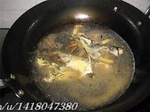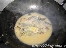 坐锅热油,放姜、蒜、葱白炝锅,待锅中出香味,放翁公鱼,双面煎透,加料酒、水