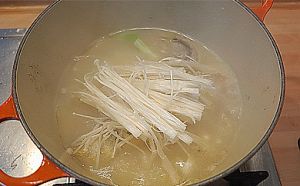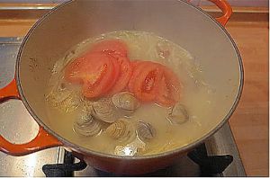 最后加入蛤蜊和蕃茄煮1分钟即可,出锅前调入盐、白胡椒粉调味。