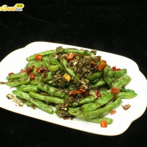 加入四季豆翻炒,知道豆子出香味,变色,上油斑,然后出锅就好了。