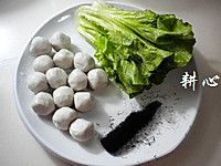 食材:达濠鱼丸、发菜和生菜。