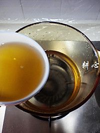 将适量的香菇水倒入汤锅中。