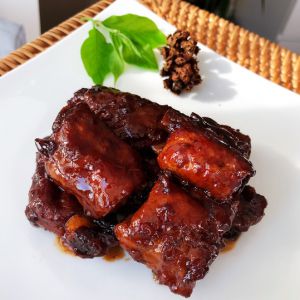 加水,与排骨齐平,小火炖15分钟即可。熬制汤汁收的差不多了,摆盘盛出。