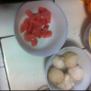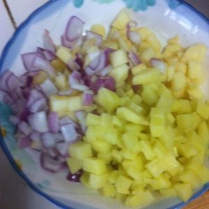 煮鱼丸的时间、把苹果洋葱土豆切一切、全部切丁、
