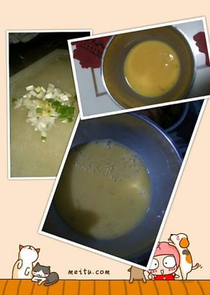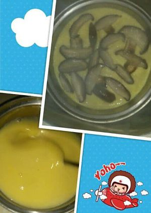 香菇切片,下锅煮,放点香油,煮好放凉,这一步最好提前弄好备用。要不热的直接放进去就变成鸡蛋茶了 ~