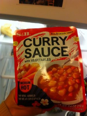 煮开水一锅,将咖喱袋隔水加热3-5分钟(有微波炉的可以打开袋子,盛在碗里直接微波加热)
