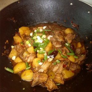 后加入土豆块,混入骨头,任其煮7~9分钟!在起锅的1~2分钟时加入所有调料,翻匀,起锅就可以了