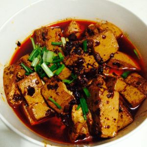放入豆腐煮,放酱油、加少许勾兑淀粉的水。放盐、糖、鸡精调味。洒葱花。