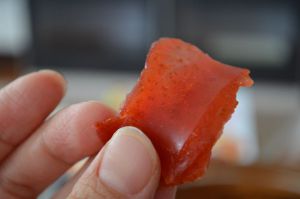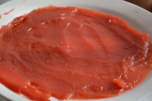 煮好后,倒在平盘上,抹平抹薄,晒1-2天,变干即可。