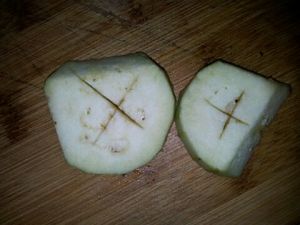 放油加花椒葱姜蒜红干椒爆香,放入炸好的茄合,加入香醋,老抽,而后加入适量的高汤,煮沸即可