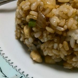 再放入米饭炒散再放入酱油,炒均匀,出锅