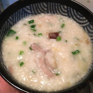 这就是煮瘦肉的水,然后把米放进去,大火煮开,转小火煮三十分钟。