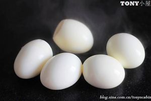 10分钟后把鸡蛋拿出,剥去外壳,你看,很光滑吧!