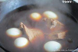 加入卤水汁,上面有说明,4份水加1份卤水,我看用不着那么多,410毫升的卤水我用掉了100毫升左右,可是我加入的水可远远超过400毫升,我专门测量了一下有1000毫升,所以你加了卤水会后尝一尝,咸度差不多就好了,咸了就不好吃了,淡了没关系,可以用调料沾着吃啊!不用加别的,白糖,酱油卤水里都有的。