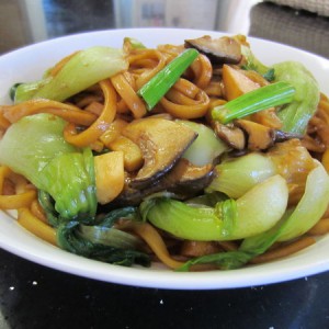一盘香喷喷能勾起你食欲的蚝油菇蔬炒面,可以装盘享用啦。