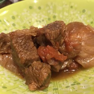 加牛腩进去,加所有调料。加水大火炖,一个小时后小咕嘟20分钟就可以出锅。牛腩事前要凉水煮开,去沫儿。