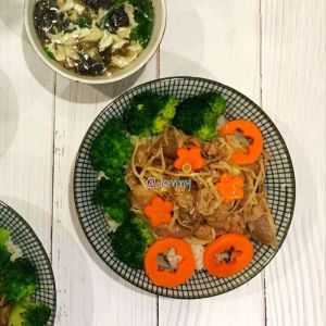 放入蚝油一勺,少量水,翻炒均匀就关火,其实炒西兰花和胡萝卜这步也可省略,但我觉得西兰花和胡萝卜蚝油爆下更好吃入味~ 大家自由选择哈