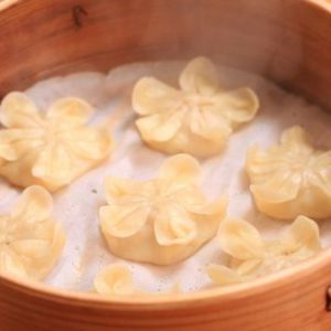将包好的梅花饺子放入烧开水的蒸锅中,大火蒸20分钟