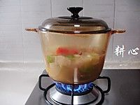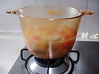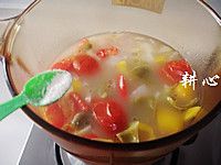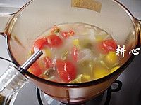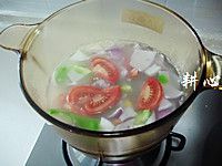 三色灯笼椒、番茄、洋葱和鸭汤。