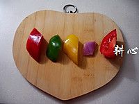 将三色灯笼椒、洋葱和番茄洗净,切块。
