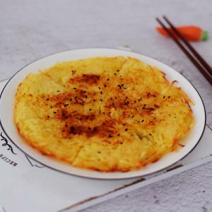 平底锅倒入适量的食用油烧热,把土豆丝放入,整理成圆形