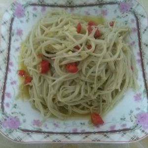 将小米椒,大蒜切末放入控干水的金针菇中。再加入盐,鸡精。