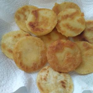 土豆泥中加入适量玉米面。可加适量盐也可不加。