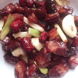 最后把大蒜,红椒,葱段放入锅中翻炒即可出锅。红枣是为了菜好看的,不喜欢的朋友可以不加。