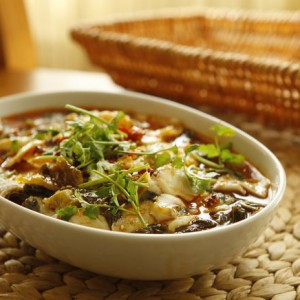 煮1分钟后待鱼肉煮成型不易散后,拿勺背轻推鱼片搅拌数下。