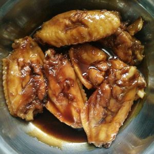 把鸡翅中用刀切十字花!用油煎制发黄!