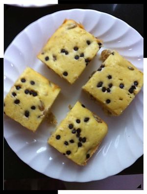 PS:柠檬葡萄干蛋糕,加入了柠檬皮和柠檬汁,蛋糕不会太腻而且有柠檬特殊的清香味,上面撒上了一层巧克力豆,因为葡萄干本身有甜味,所以糖份可以适当减少用量哦!