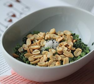 最后将花生米放在香菜上面 再撒一点黑芝麻