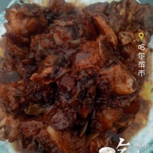 上色后放一大碗水,没过排骨,小火炖至20分钟左右大火收汤。出锅