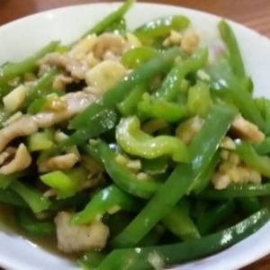 葱姜蒜呛锅,加入调料,待调料粘稠,倒入肉丝、青椒翻炒出锅