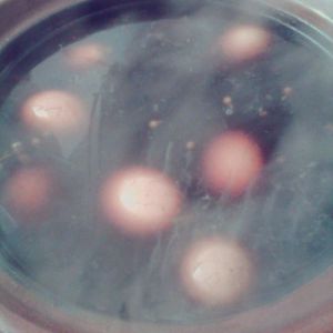 锅中加水放入清洗好的鸡蛋,煮熟出锅,如果要全熟的蛋黄那么就煮五分钟。然后捞出过凉水,再拿小勺慢慢的敲鸡蛋,使鸡蛋外壳拥有乌龟壳的纹理。