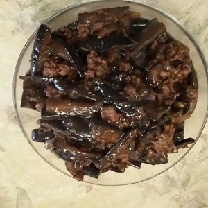 另起锅下底油,煸香葱姜蒜末和豆瓣酱后下肉末迅速炒散。放白糖、少量酱油、醋和清汤(没有清汤可放白水),再下入炸好的茄子。收干汁后用水淀粉勾芡,最后加入鸡精即大功告成。