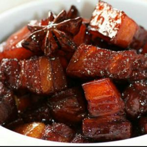 加水、糖、腐乳汁大火烧开,小火炖至肉软糯,加盐调味,继续炖5分钟