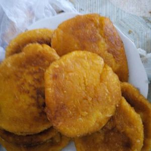开火热油,有热后放入做好的南瓜饼,炸成金黄色,捞出。