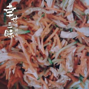 同时黄瓜胡萝卜挫丝,所有调料根据口味拌一碗凉拌汁
