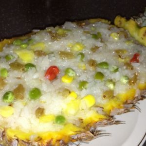 将以上食材放入菠萝盅 上火蒸20分钟 即可