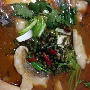 锅底加油放入糟辣子,豆瓣酱炒香,放入干辣椒、花椒继续炒最后放葱姜蒜,加世刚熬好的鱼汤小火熬3分钟,捞出辅料